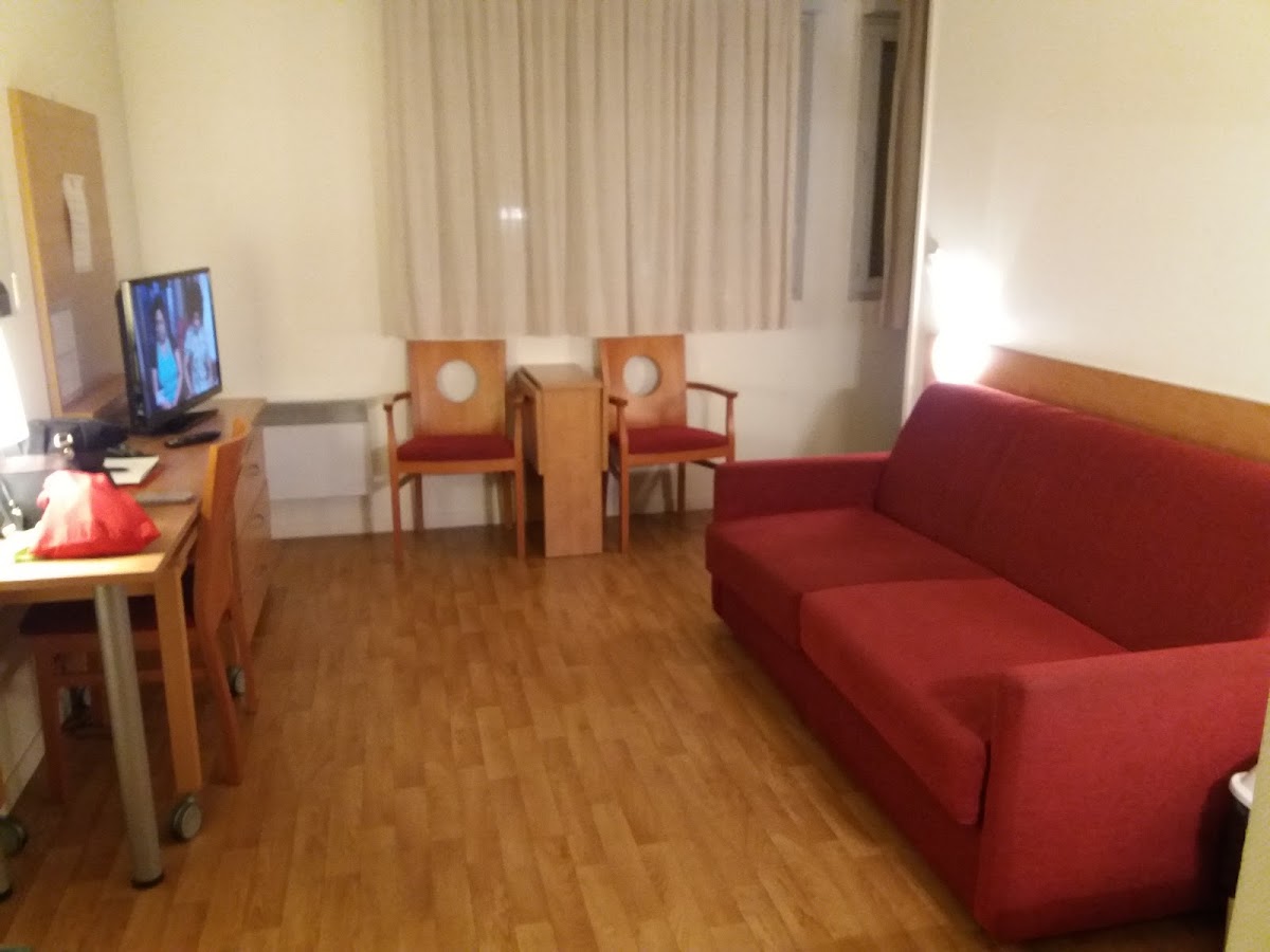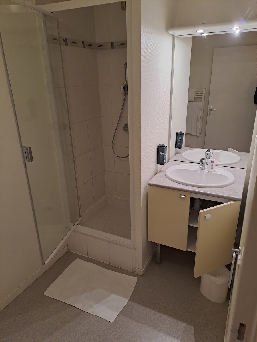 Bus ride C4 to Rennes centre. Modern apt block, good sized rooms, airy- small balcony in each one. Hob, microwave. Double, and sofa bed so can sleep 4. Well appointed. Reception, private and on road parking. Lift.